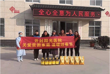 心系群众,服务基层,是医院一贯的优良传统,开封阳光医院不断完善志愿服务队建设,全力提升志愿服务项目品质,深入基层开展各种义诊及志愿服务活动。多年来,医院广泛开展贫困户慰问活动、义诊活动等。通过志愿服务,将优质医疗资源输送到基层,书写党员干部责任意识,努力打造有温度的医院。